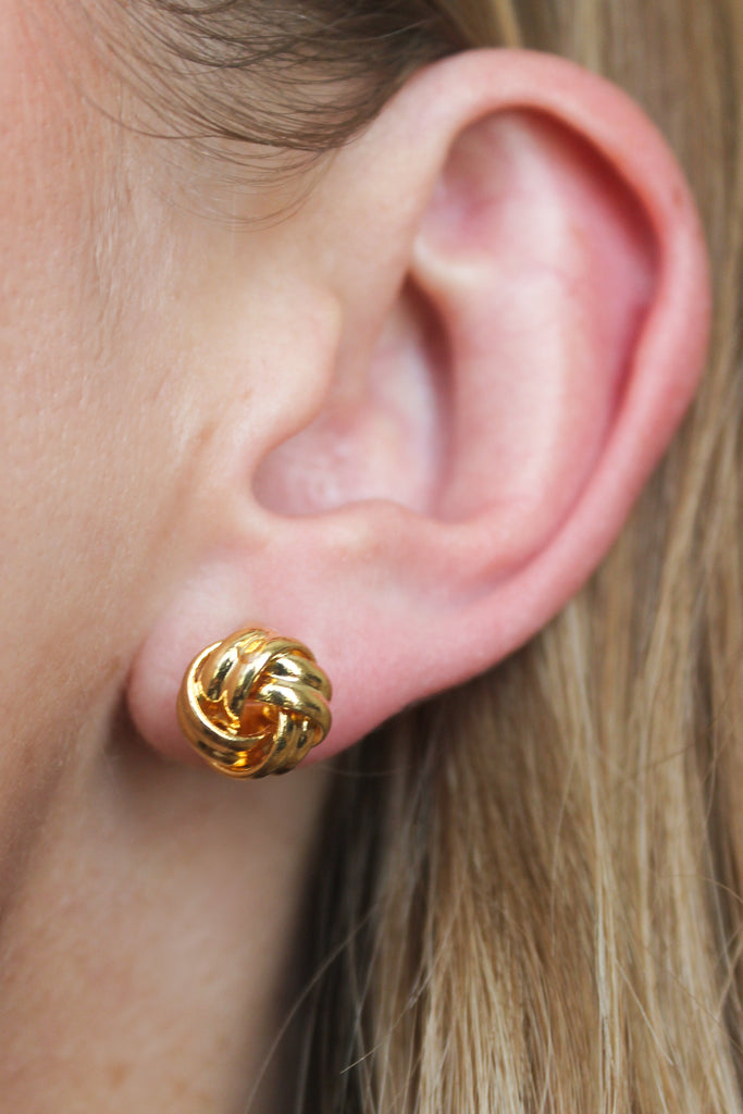 Description: Clip-on piece has our resin, bendable piece to fit around your earlobe Metal: 18K Gold plated Stainless Steel Size: Stud, 9.5mm Type: Resin |